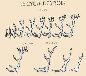 La masse des bois va augmenter jusque vers l’âge de 10-12 ans puis aura tendance à régresser : le cerf ravalera.