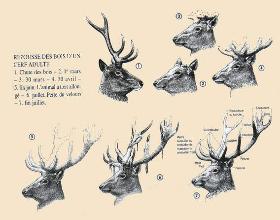 La chute des bois aura lieu dès février pour les vieux animaux, le cycle de repousse durera 120 à 140 jours.